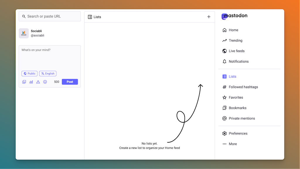 Imagine you are interested in a lot of different topics or you want you personal timeline to stay personal but also follow some work related users on Mastodon. How can you do that without mixing up your timeline? The answer is: lists!