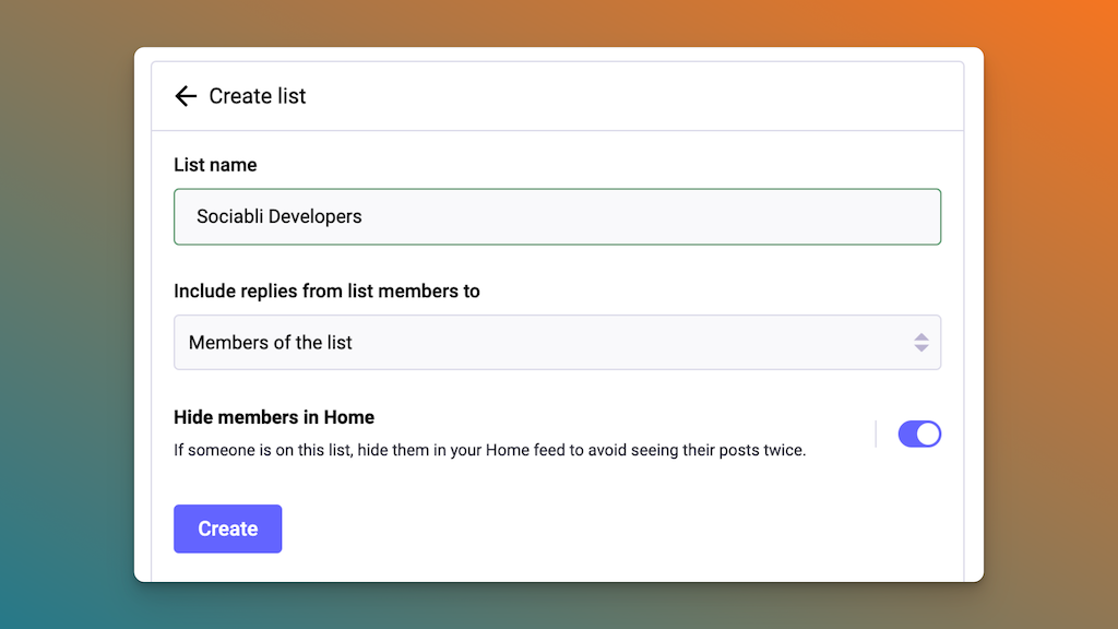 "Hide members in Home" is where the magic happens. So even though you have to follow each member of the list, you can hide their posts from your default timeline! This way you can use lists to build custom timelines without getting a mixed up home timeline.