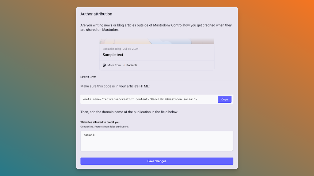 <meta name="fediverse:creator" content="@sociabli@mastodon.social">